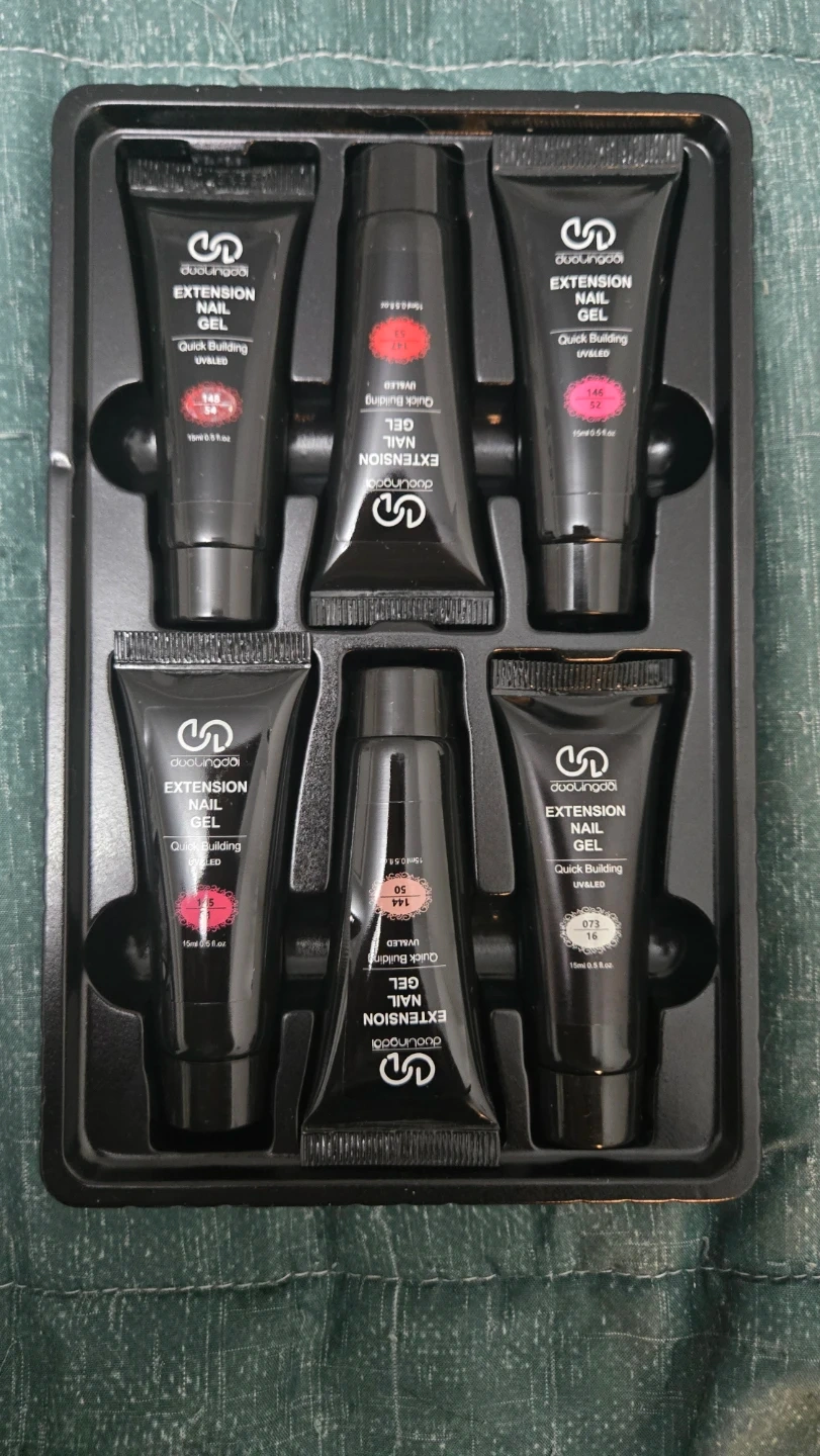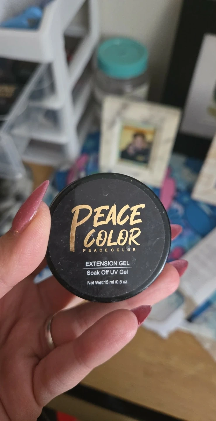 This is a Peace Color Extension Gel Nail Kit that includes a UV lamp and nail tips. The kit comes with multiple tubes of extension gel in various shades. It's designed for creating nail extensions.