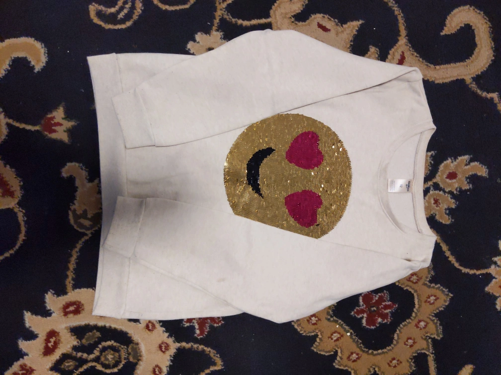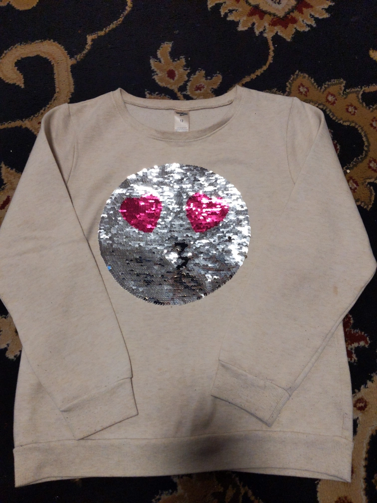 OshKosh B'Gosh Girls' Size 12/size 10 White Sequin Emoji Sweater
