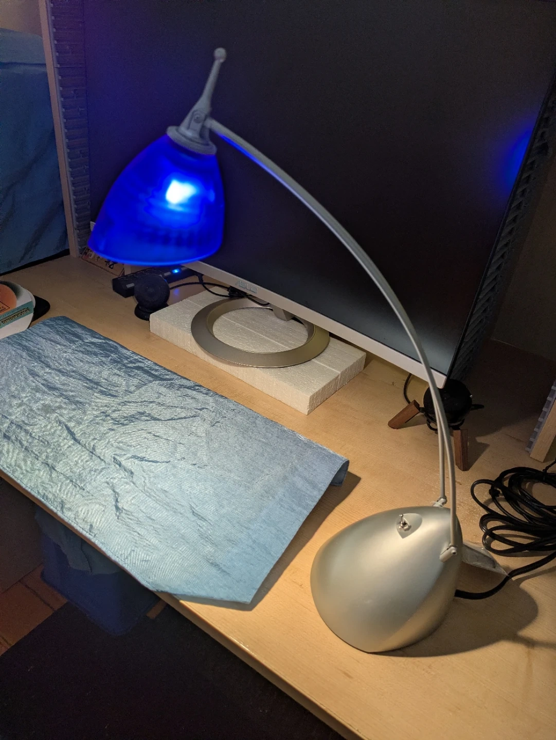Selling a Stratford Collection Incandescent Desk Lamp. It features a UV filter with a cobalt blue shade and a rocker on/off switch on the base. It also includes light bulb. Comes with the original box!
