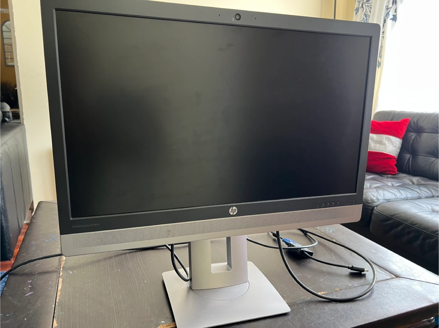 $10 HP EliteDisplay E241n monitor with integrated webcam and stand. It's a 24-inch display. Includes power and video cables.