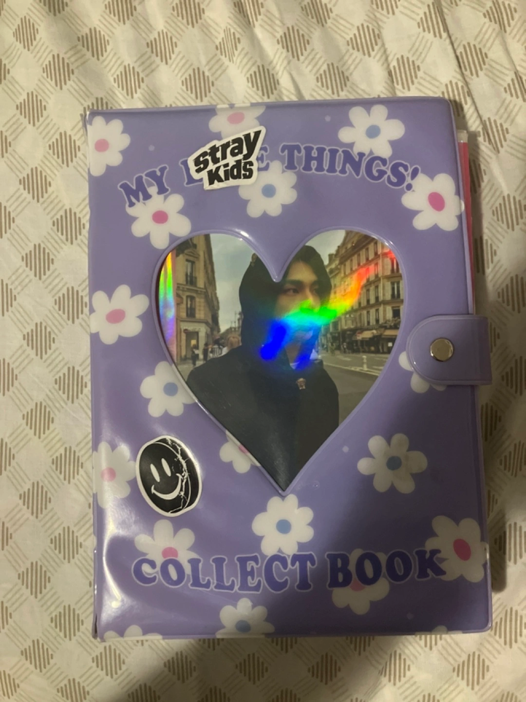 28Purple binder with floral accents. Holds photocards. Includes various Kpop photocards. Great for collectors. Straykids,newjeans(njz),itzy and enhypen. $10 per 5 cards of choice Hold binder plus 154 cards $110 Pick up and cash only