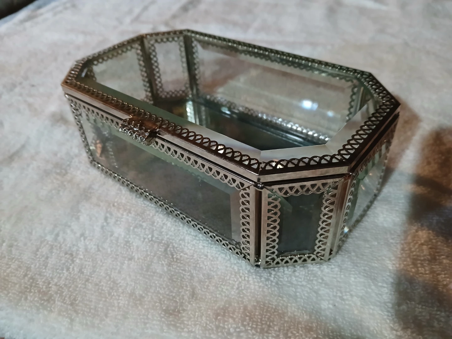 Selling a lovely glass jewellery box from Homesense. It's in great condition and perfect for storing your precious items. Originally priced at $19.99!