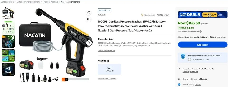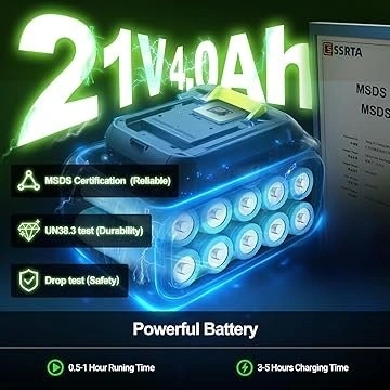 1000PSI Cordless Pressure Washer, 21V 4.0Ah 2 * Battery-Powered Brushless Motor Power Washer with 6-in-1 Nozzle, 9 Gear Pressure, Tap Adapter for Car Washing, Patio, Fence, Driveway, Outdoor Cleaning.
