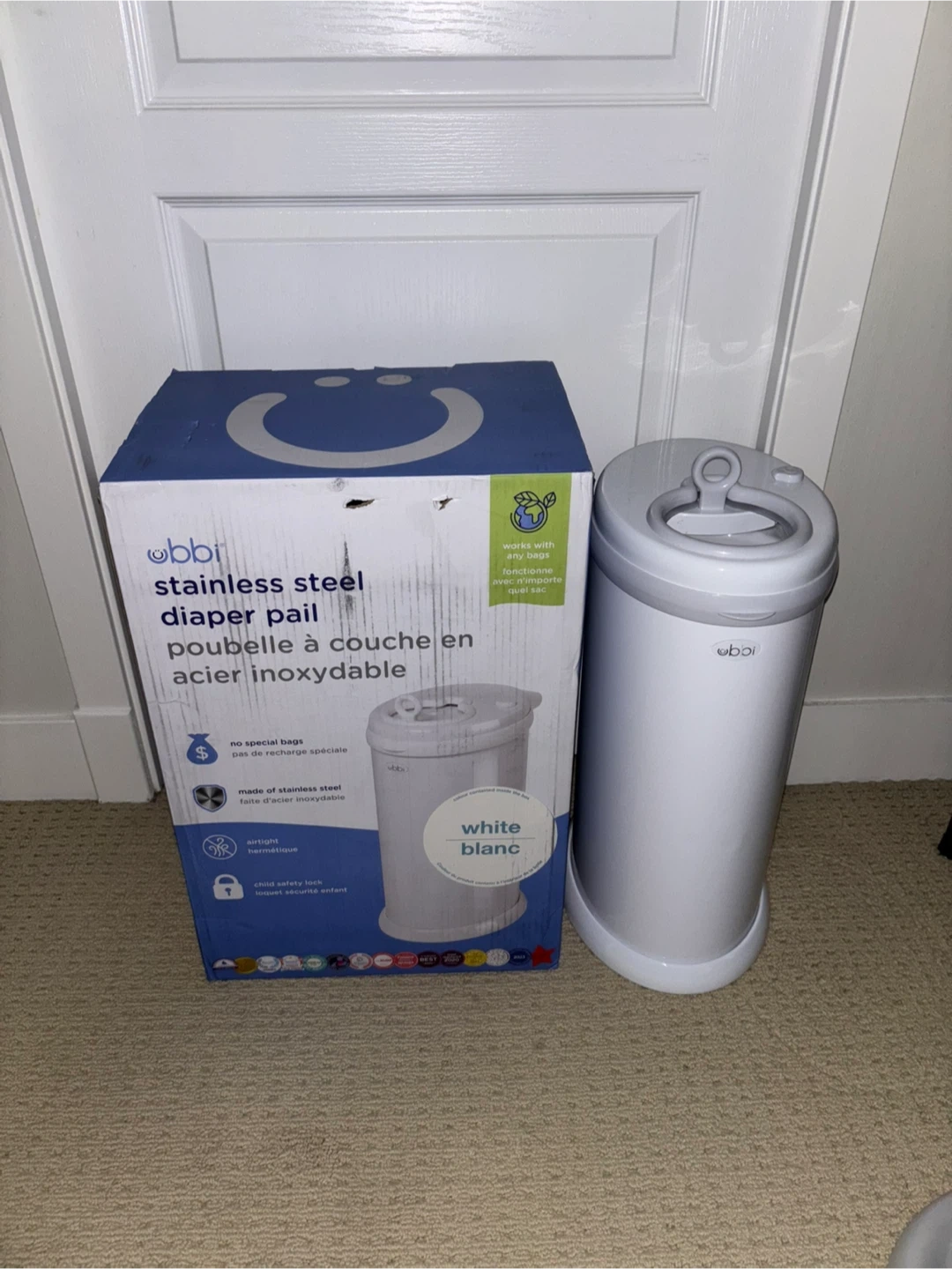 Ubbi Stainless Steel Diaper Pail - White