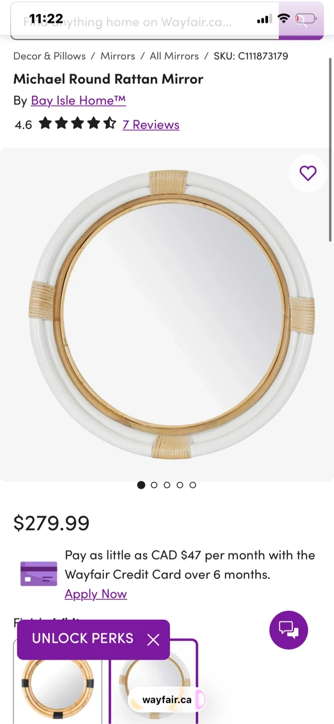 Buy & SellBay Isle Home Michael Round Rattan MirrorBay Isle Home Michael Round Rattan Mirror$130A stylish round mirror featuring a white rattan frame with natural woven accents. This decorative mirror adds a touch of coastal charm to any room.ConditionNewWHERE TO MEETCheck LocationView MapSELLERverifiedZeranMarkham W45431 reviews0 chats·0 favorites·5 viewsSEND CHAT TO SELLERHi Zeran! I’m interested in your listing.Hi Zeran! I’m interested in your listing.Get the Karrot app to chatSign In to chat