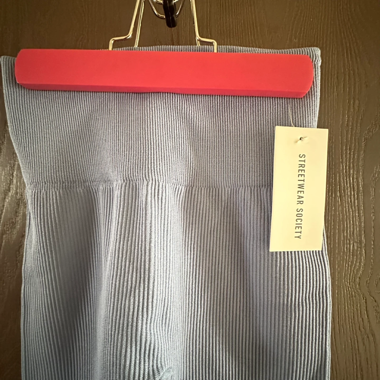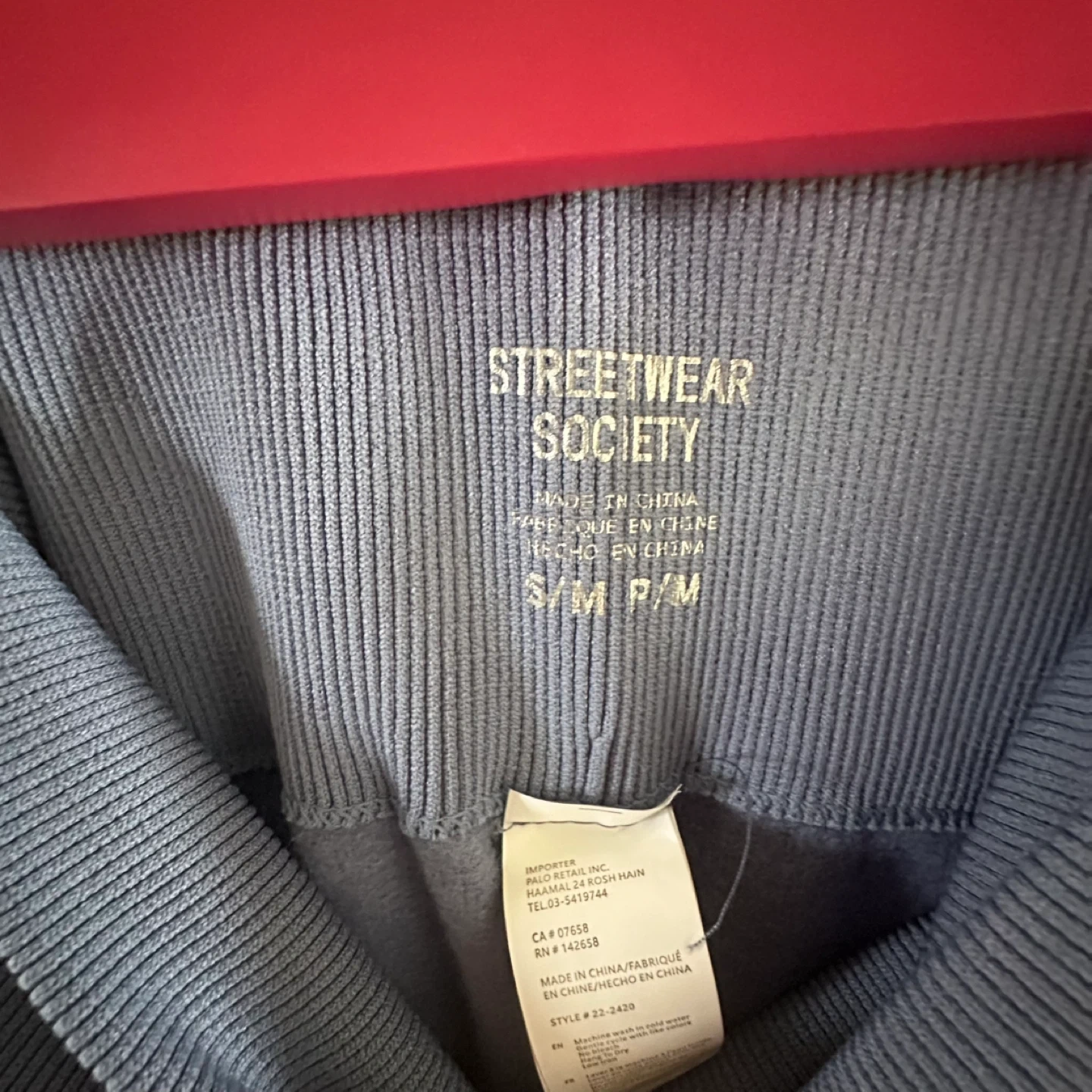 Streetwear Society leggings in a ribbed knit fabric. Size S/M. Light blue color. These are great for casual wear or workouts!