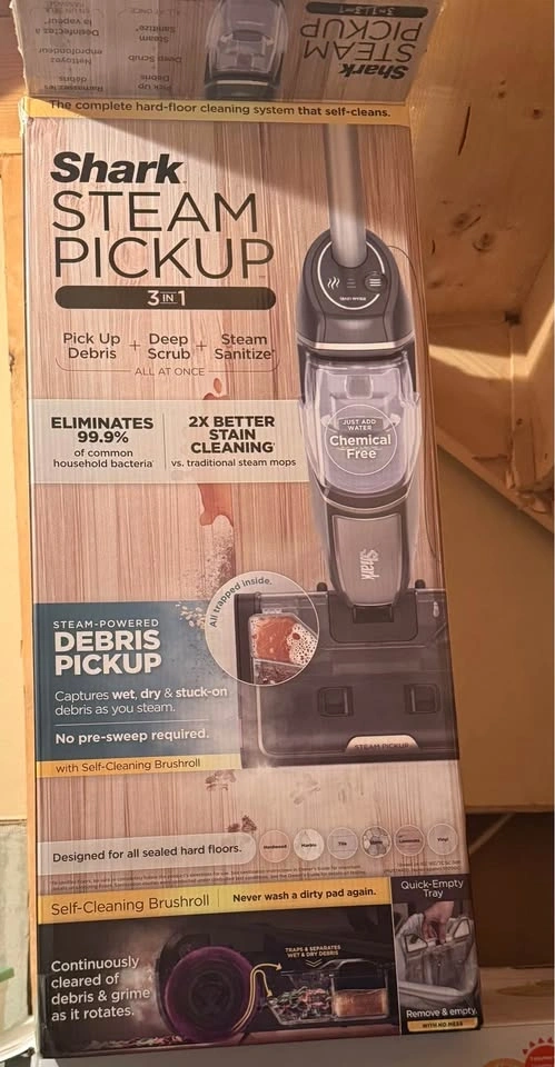Brand new in box, never used! I received this Shark Steam Pickup 3-in-1 Steam Mop & Vacuum as a gift, but I already have another one that I use regularly. This one was never used, and it’s past the return window. (online price is $270). Need it gone ASAP.