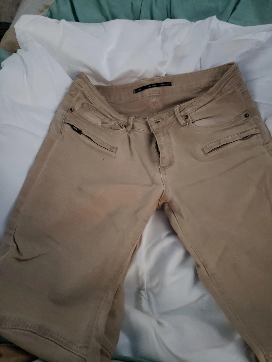 These are Zara Woman khaki pants. They're a size 4 US, EUR 36, MEX 26. Made in Turkey. Features zippered pockets on the front and by the ankles
