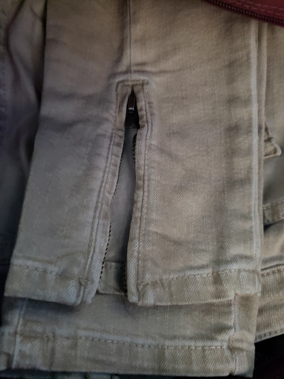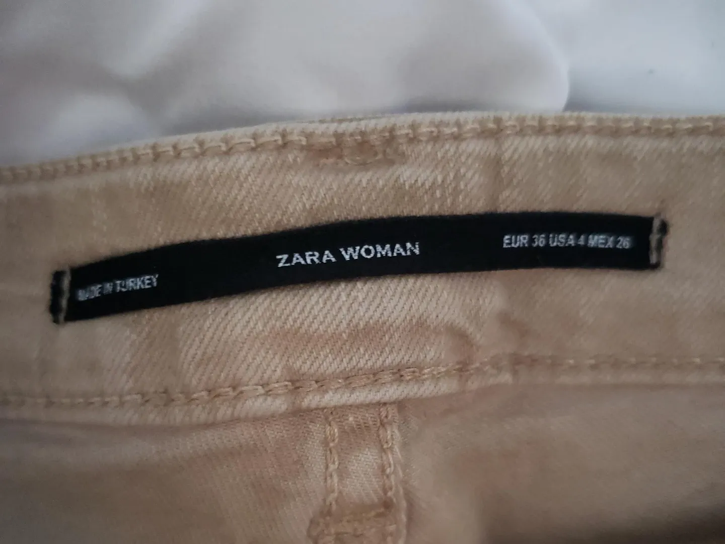 These are Zara Woman khaki pants. They're a size 4 US, EUR 36, MEX 26. Made in Turkey. Features zippered pockets on the front and by the ankles
