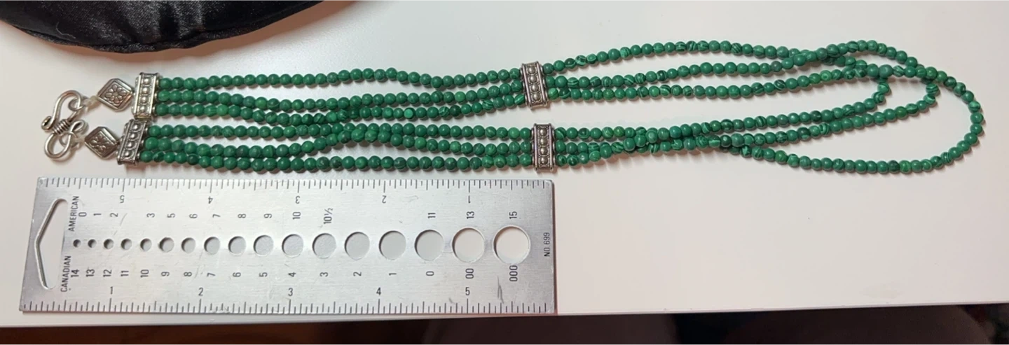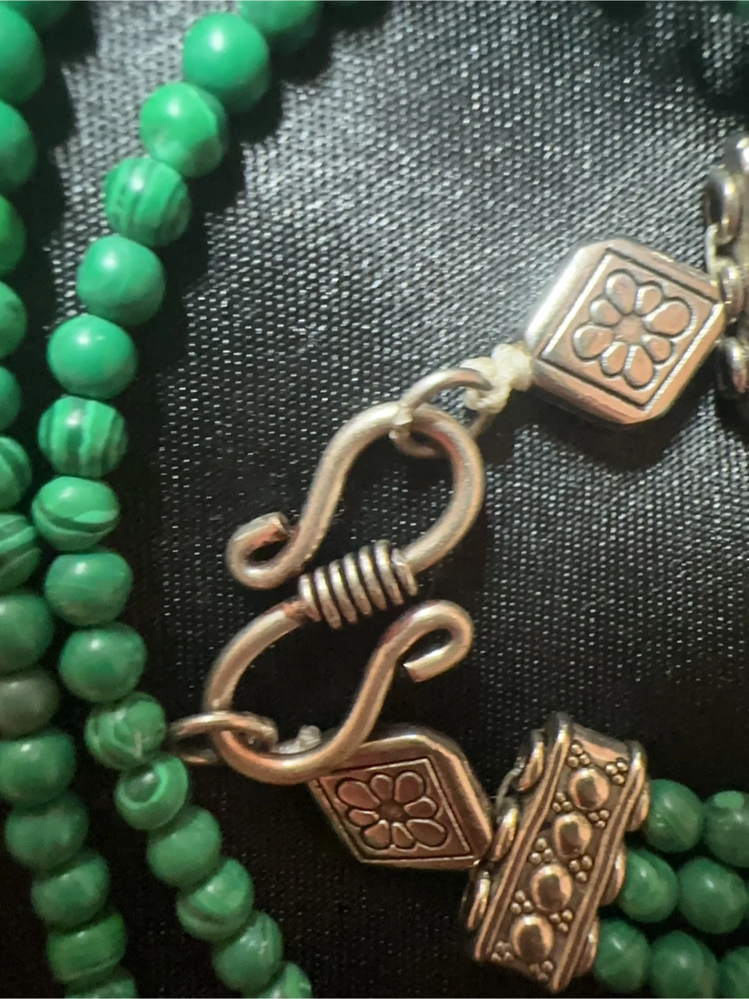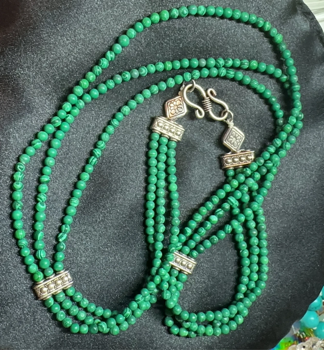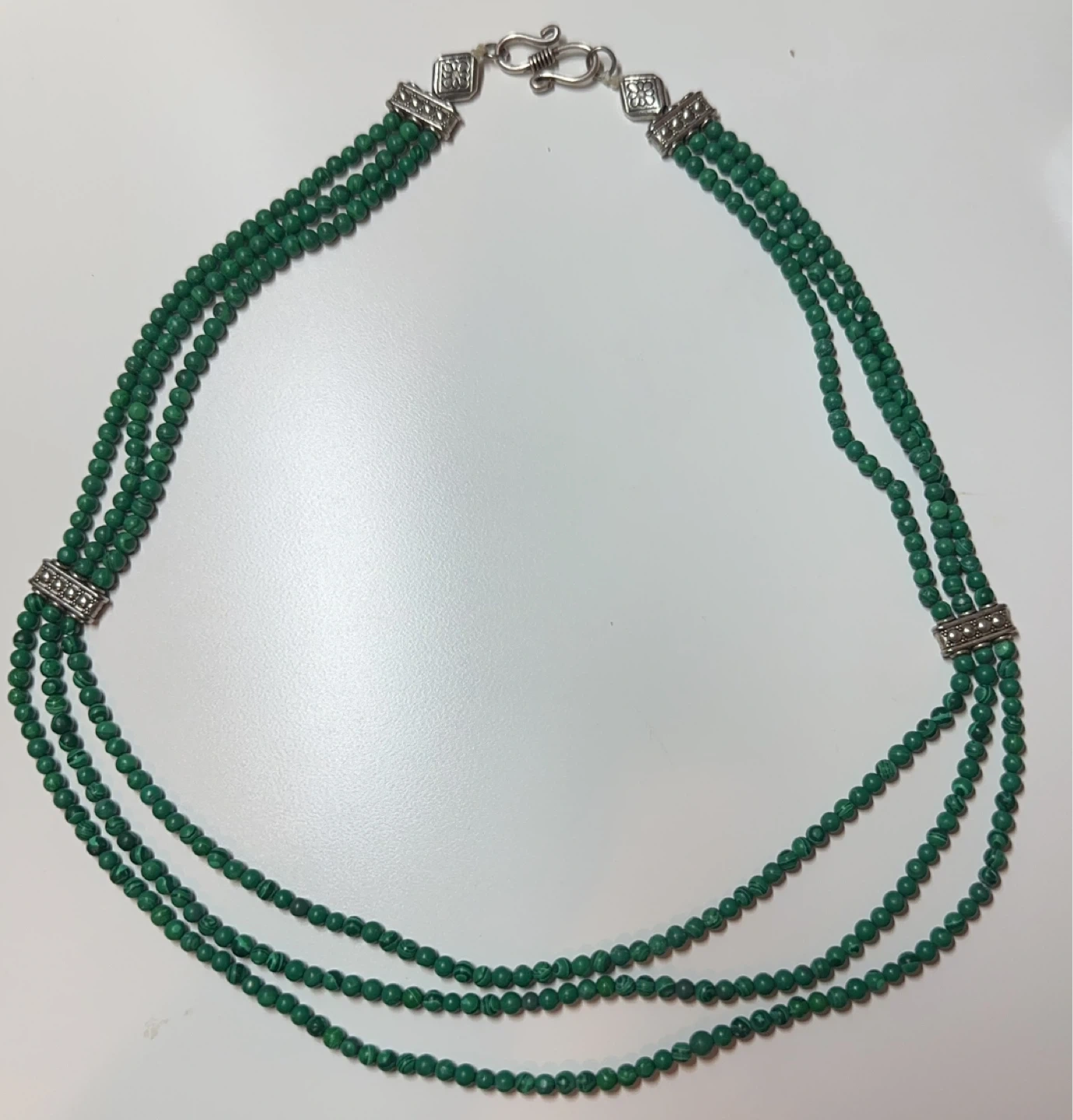 3 Strands Faceted 3mm Malachite Beaded Necklace, Micro Round Malachite Tiered Beaded Necklace, Special Birthday Gift, Unique Gift Ideas, One of a kind handmade