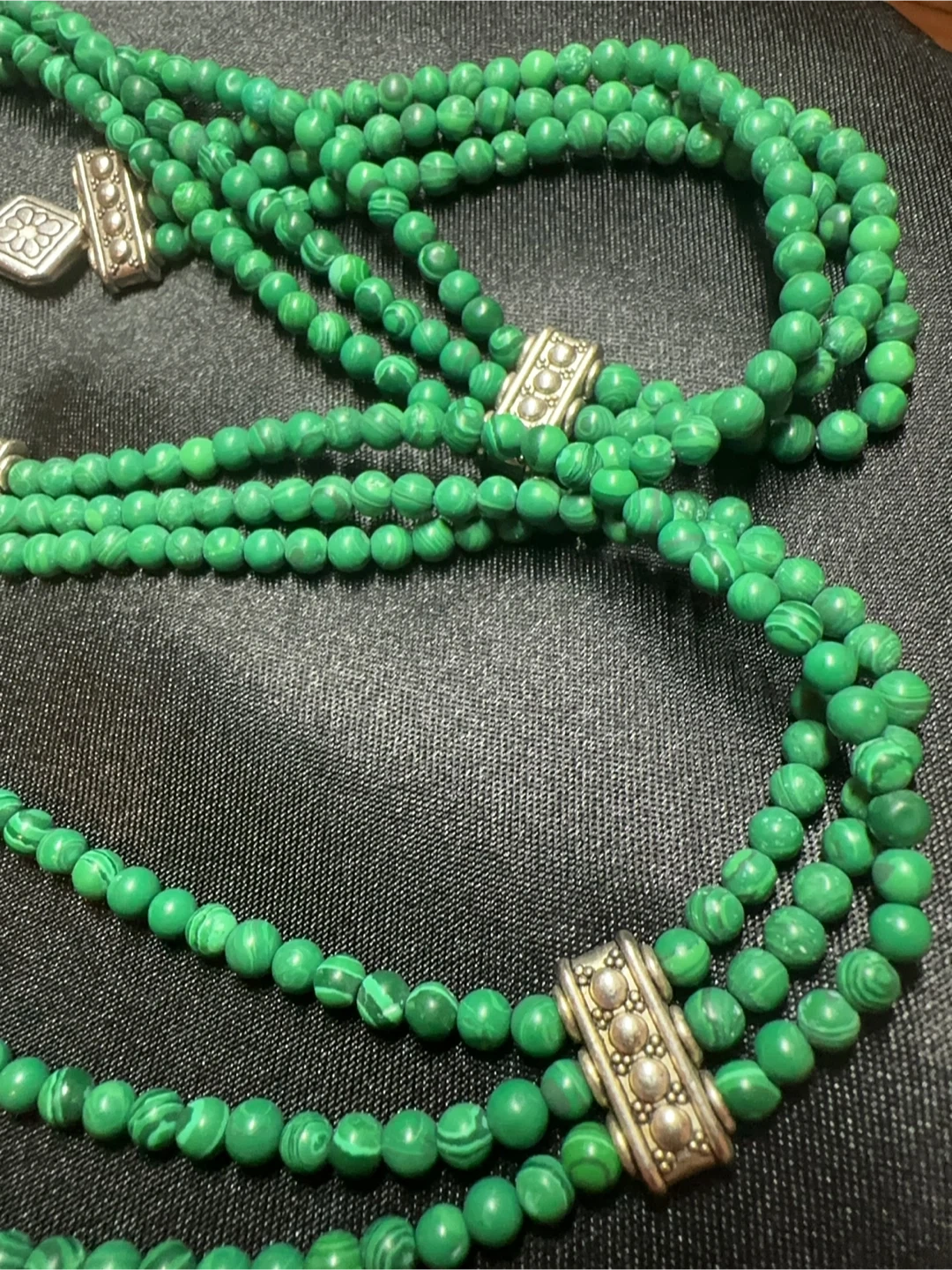 3 Strands Faceted 3mm Malachite Beaded Necklace, Micro Round Malachite Tiered Beaded Necklace, Special Birthday Gift, Unique Gift Ideas, One of a kind handmade