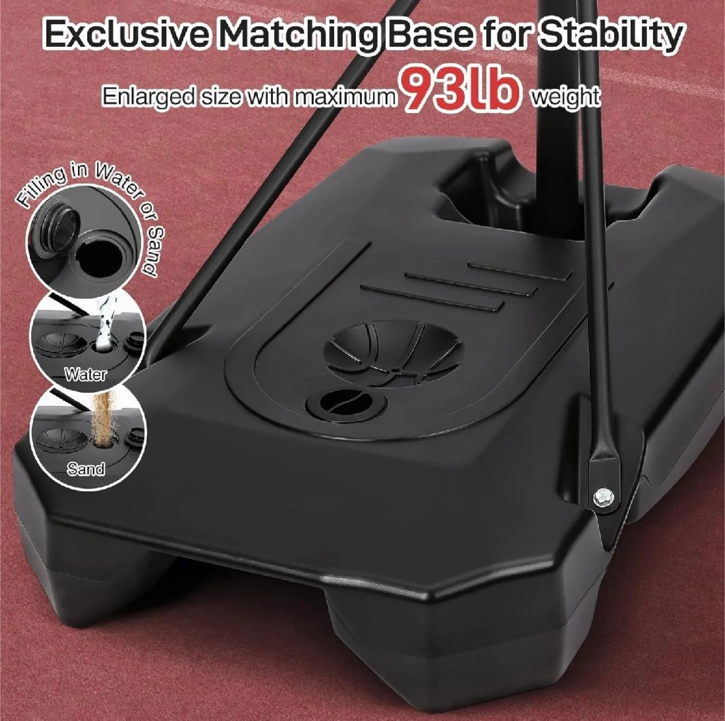 * Portable Base: Can be filled with water or sand for stability.