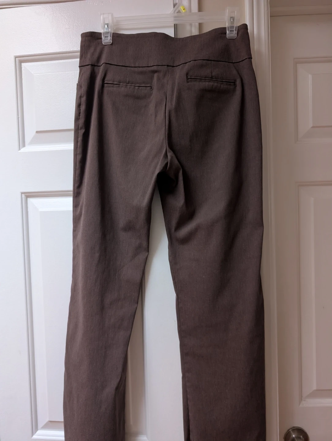 These Reitmans pants are in a size 6. They're a classic brown colour with a flattering fit