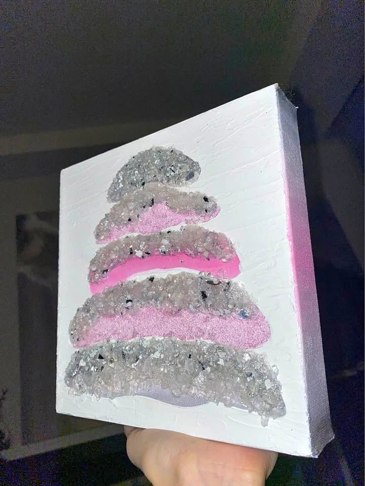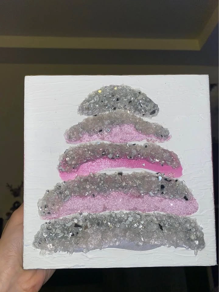 Attract healing, love and success with this rose quartz and clear quarts crystal canvas painting. The video is more accurate with the shine, the pictures do not do justice. 8x8 inch Canvas painting Modelling paste, rose quartz crystal, clear quartz, glass, reflective glitter, resin. Made by myself, the artist! Ready to pick up! π