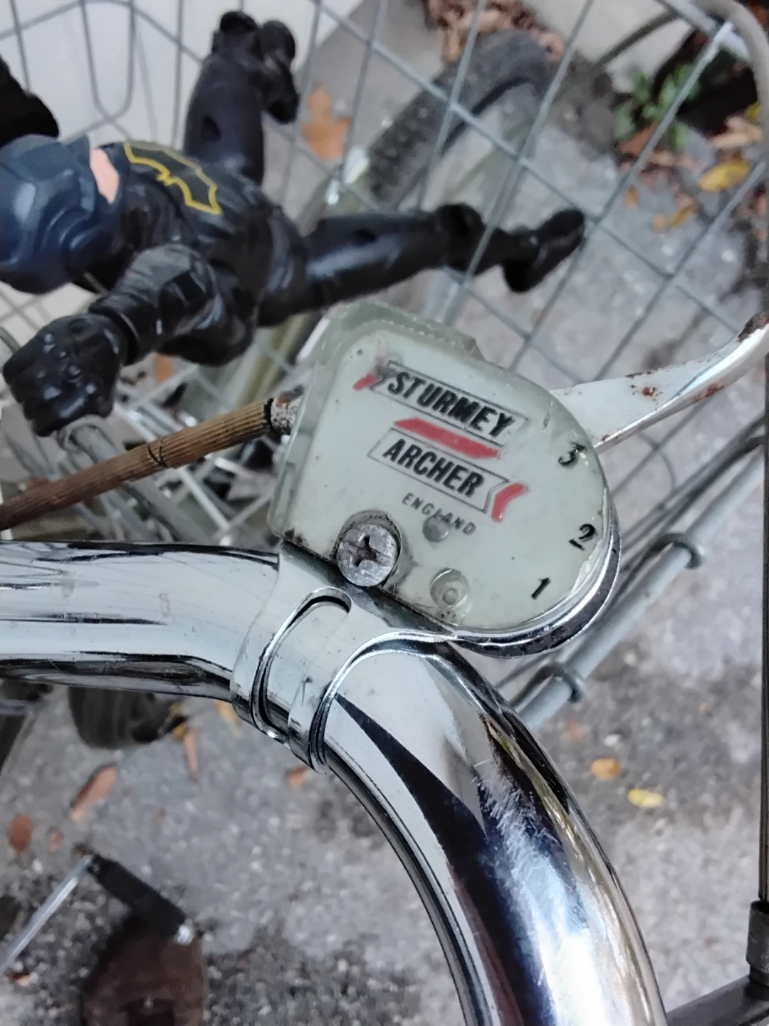 π₯Selling a vintage Raleigh Superbe three-speed (Sturmey Archer) bicycle in olive green. Made in England. This classic bike is perfect for leisurely rides around town. It has a comfortable seat and a convenient basket for carrying groceries or other items. The bike shows some signs of wear, but it's still in good working condition and ready for a new owner! Batman action figure included!!!