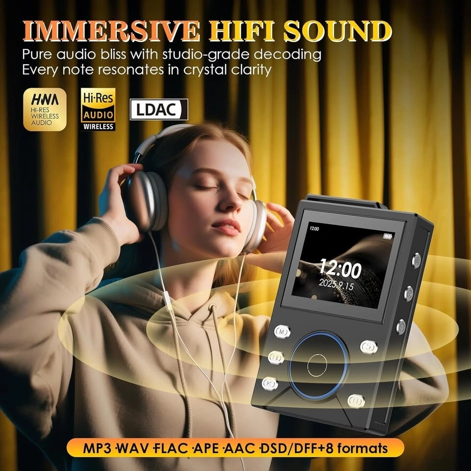 Brand new HIFI lossless sound quality digital audio player. Plays all your files: MP1, MP2, MP3, WMA, AAC, M4A, OGG, WAV, APE, FLAC, ALAC, DSF, DFF. Weighs just 211g, slips easily into pockets. Pure music, perfectly portable.
