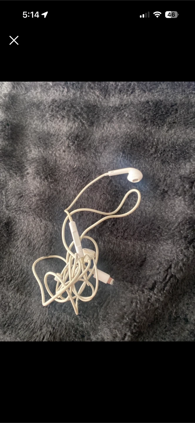 White Apple EarPods with a Lightning connector. Includes in-line controls for volume, playback, and calls. They're designed for a comfortable fit. Great for listening to music or taking calls on the go! Pick up cash only