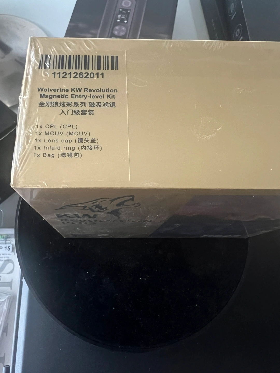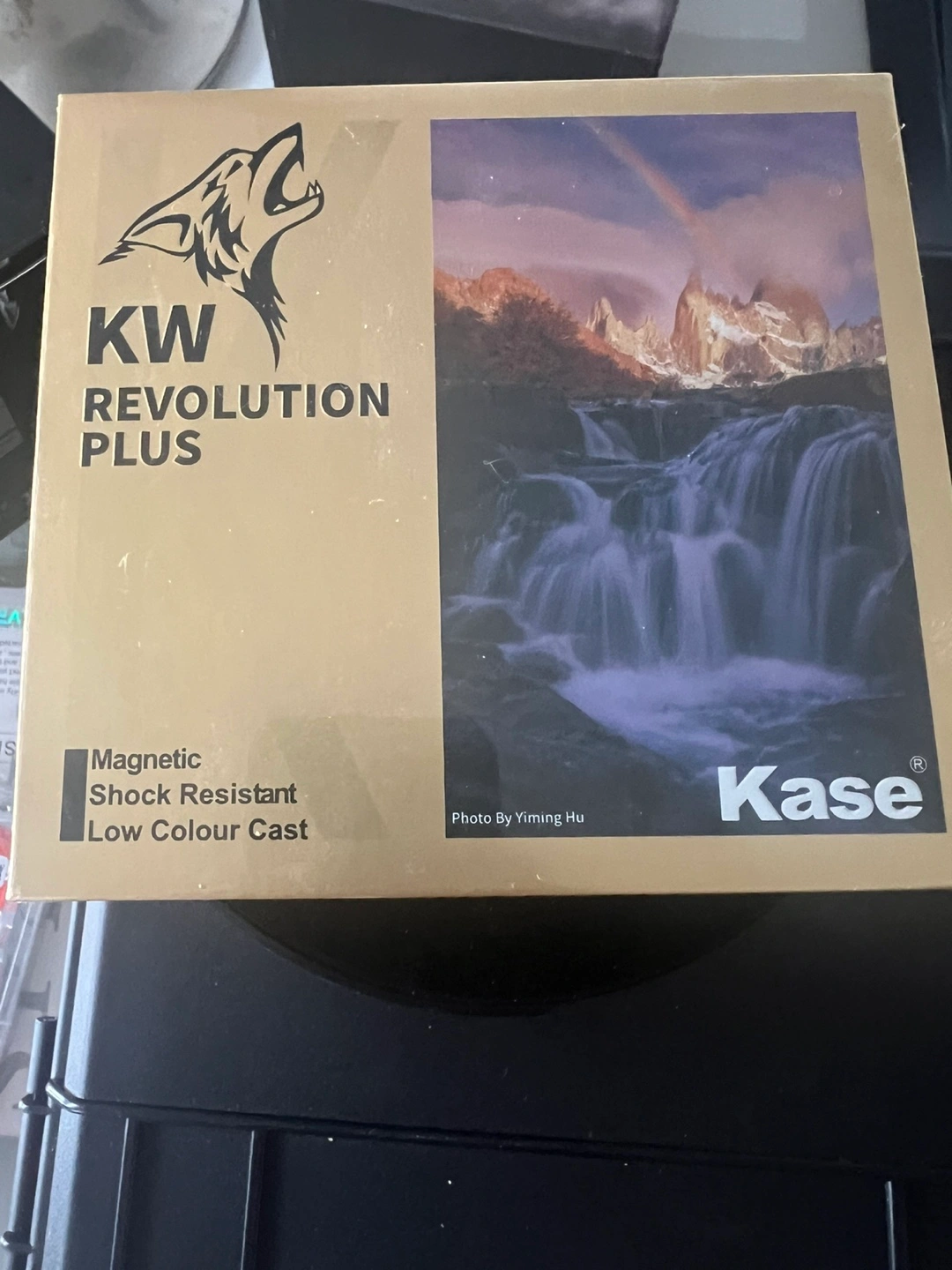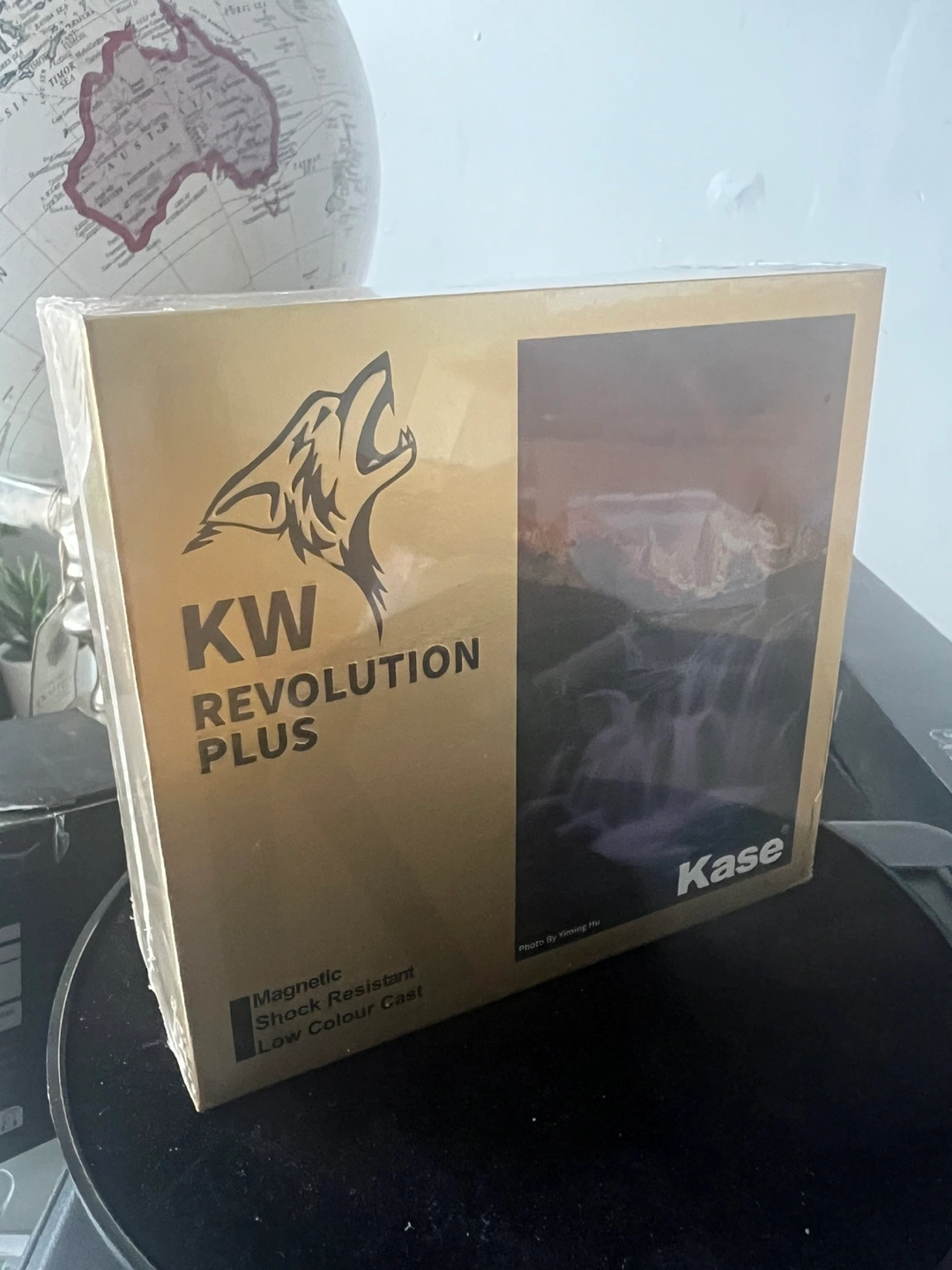 New, sealed Kase Wolverine KW Revolution magnetic filter kit. Includes CPL, MCUV, lens cap, inlay ring, and carrying bag. Magnetic, shock-resistant, low colour cast.