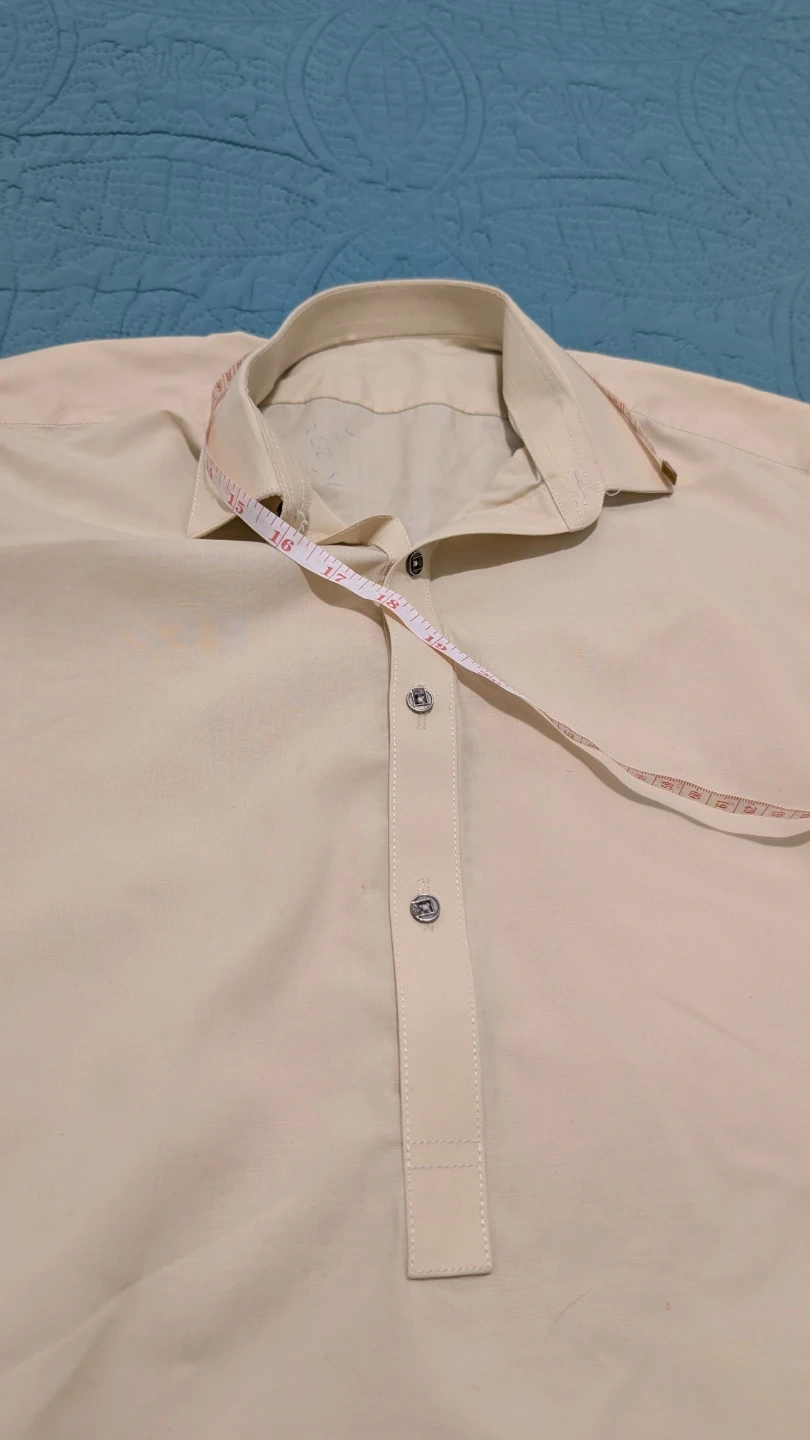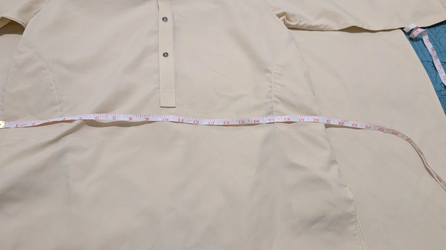 Selling a men's kurta pajama set in a nice yellow colour. The size is approximately a medium. The chest measures about 21 inches across, the sleeve length is about 20 inches, and the length of the kurta is about 37 inches. Perfect for a relaxed and comfortable fit! Used twice. Barely one stain on shalwar that can seen on the picture.