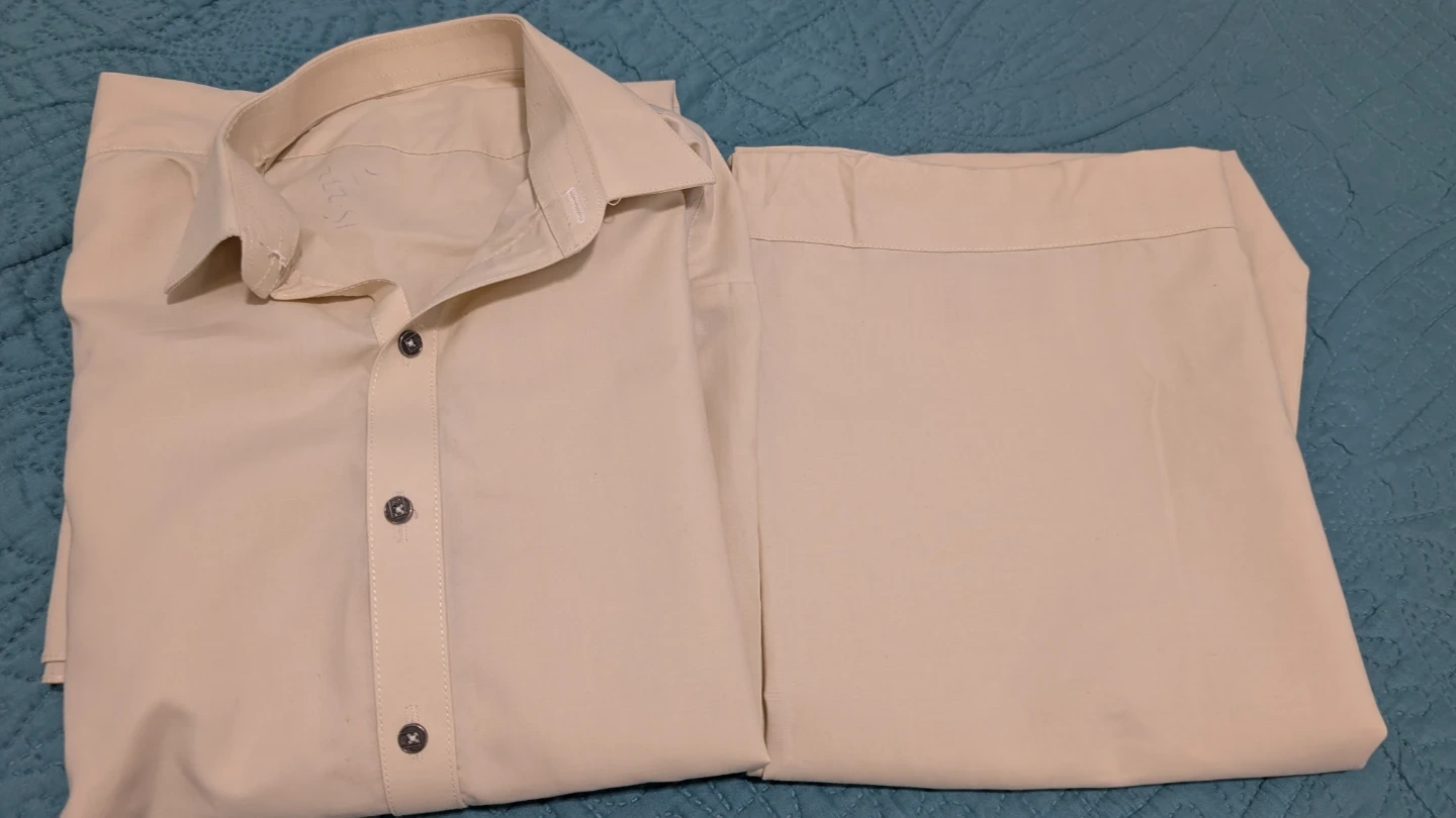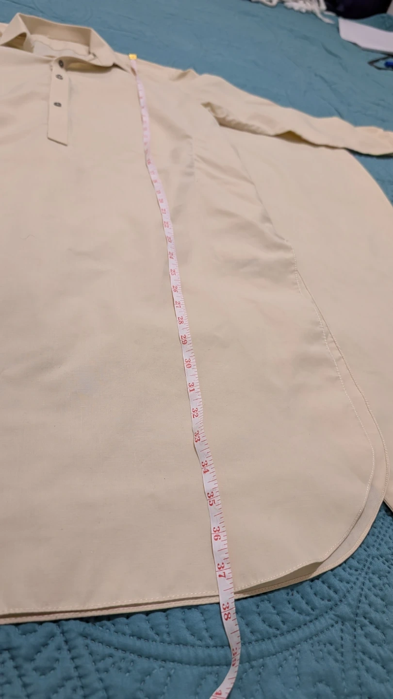 Selling a men's kurta pajama set in a nice yellow colour. The size is approximately a medium. The chest measures about 21 inches across, the sleeve length is about 20 inches, and the length of the kurta is about 37 inches. Perfect for a relaxed and comfortable fit! Used twice. Barely one stain on shalwar that can seen on the picture.