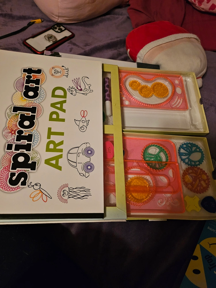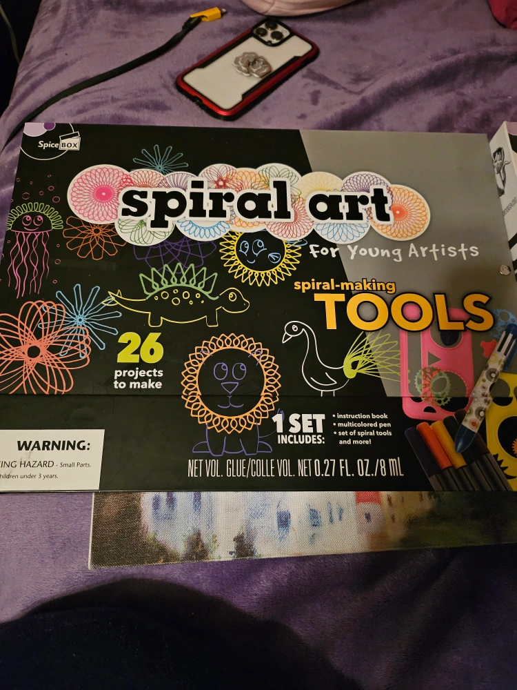 spiral art kit. Includes instruction book, spiral-making tools, and craft paper. Create cool drawings and doodles. 26 projects to make. it has never been used, but is missing the markers, and the pen