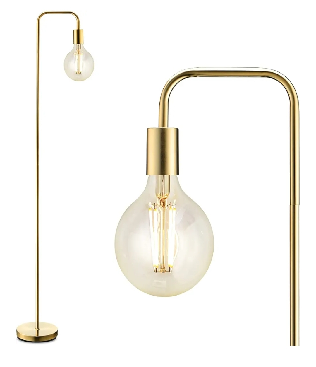 I'm selling a stylish gold floor lamp that stands 63 inches tall. The base is 8.7 inches in diameter, and the arm extends 9.5 inches. Please note that the bulb is not included, so you can choose your favorite style to match your decor