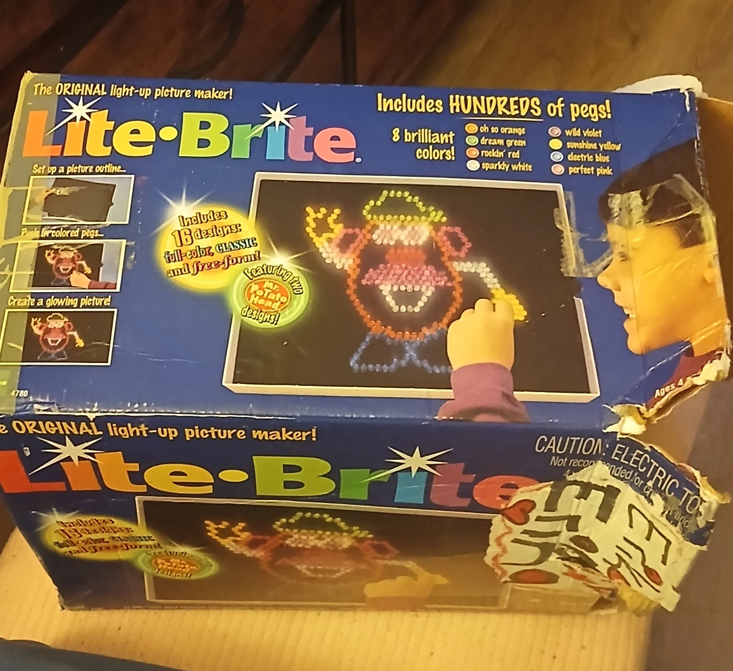 Selling a vintage Lite-Brite, the original light-up picture maker! Includes hundreds of pegs in 8 brilliant colors, plus 15 design sheets for full-color, classic, and free-form fun! Comes with everything you need to create glowing pictures,it's from 1998 bout it for my daughter when she was 9 she's 36 i took good care of it it's time to let it go.