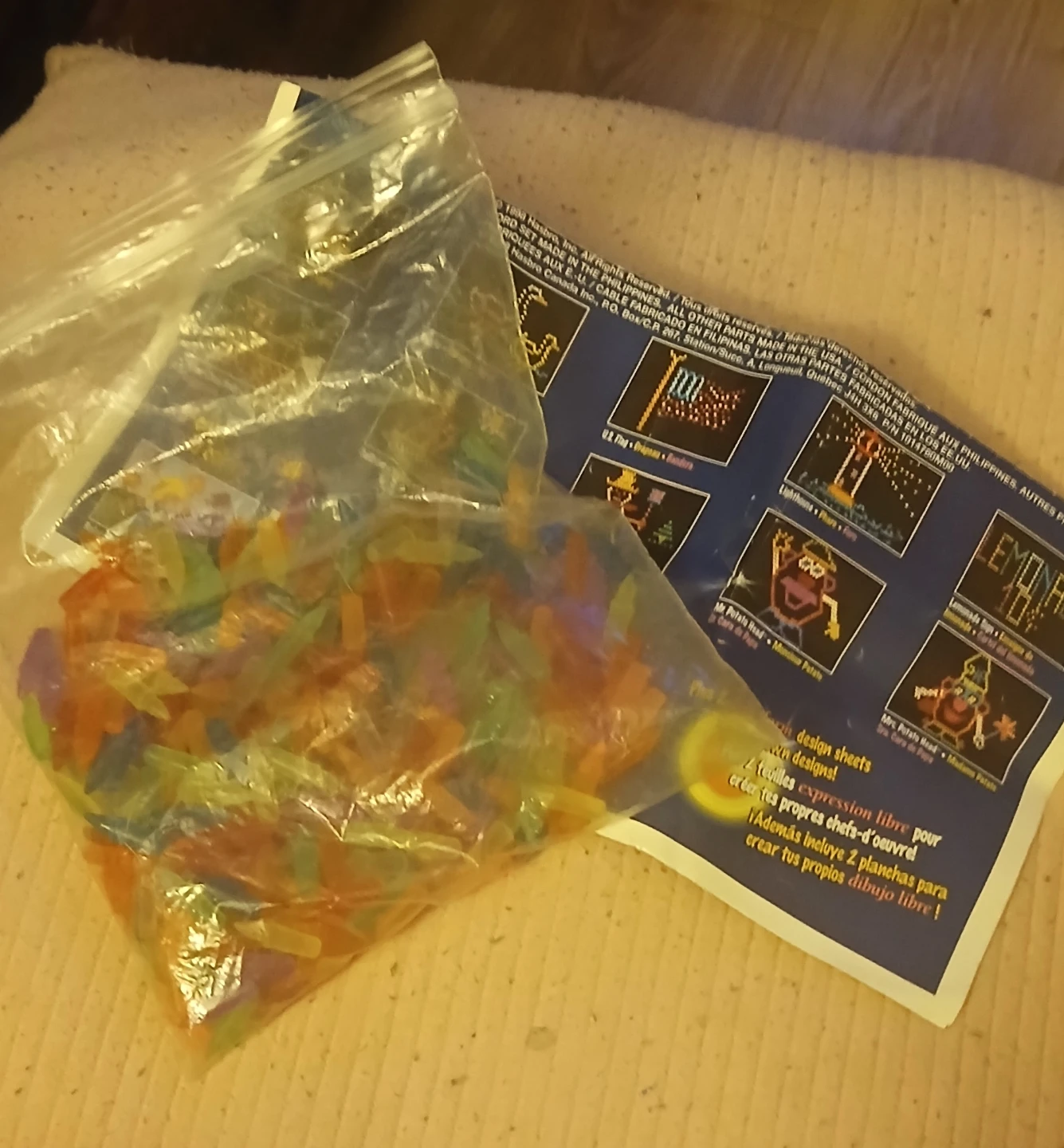 Selling a vintage Lite-Brite, the original light-up picture maker! Includes hundreds of pegs in 8 brilliant colors, plus 15 design sheets for full-color, classic, and free-form fun! Comes with everything you need to create glowing pictures,it's from 1998 bout it for my daughter when she was 9 she's 36 i took good care of it it's time to let it go.