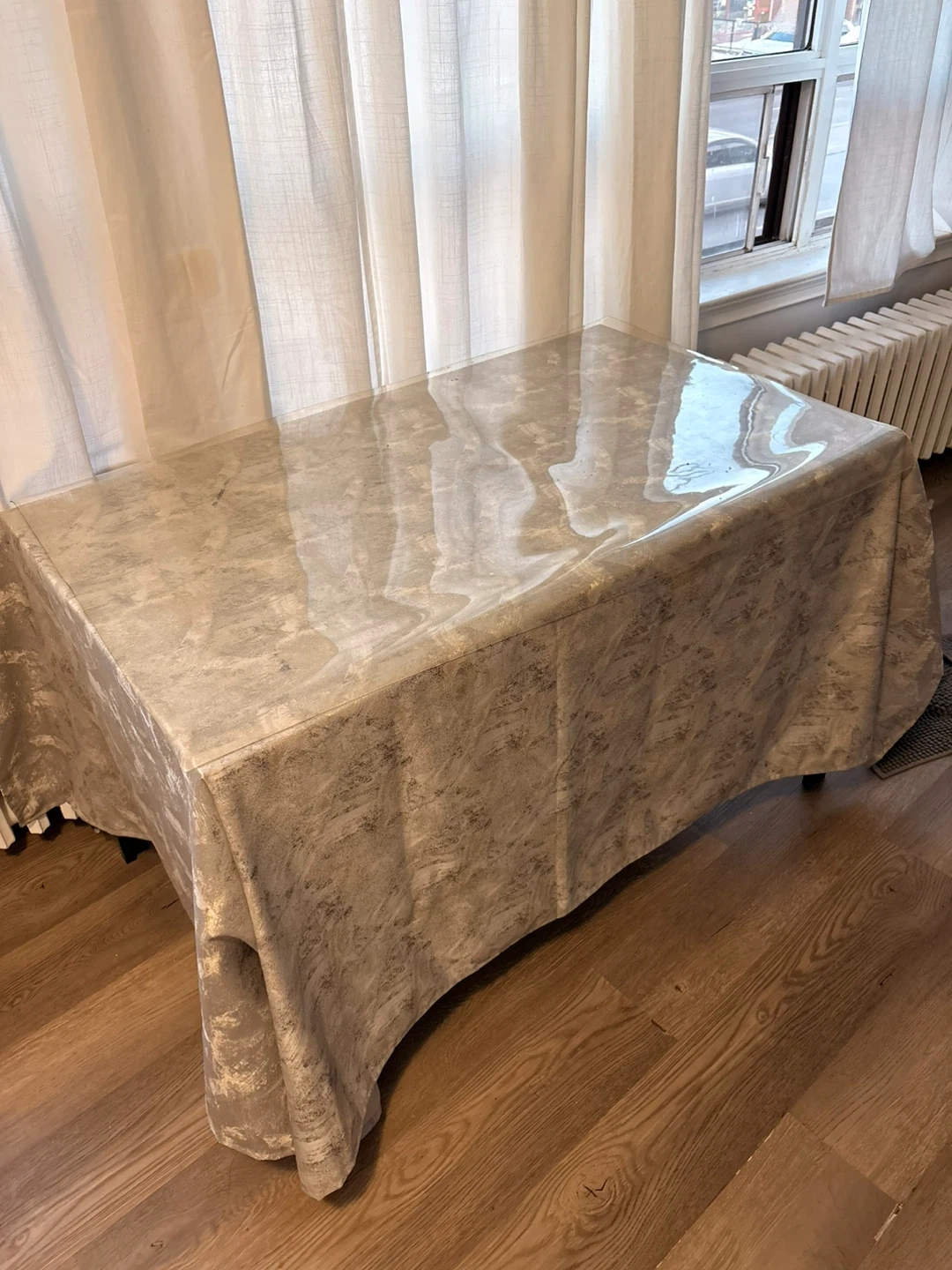 A sleek dining table featuring a glossy black glass top and a sturdy black metal frame. It's suitable for everyday meals or as a stylish addition to your dining space. The minimalist design makes it a versatile fit for various decor styles.