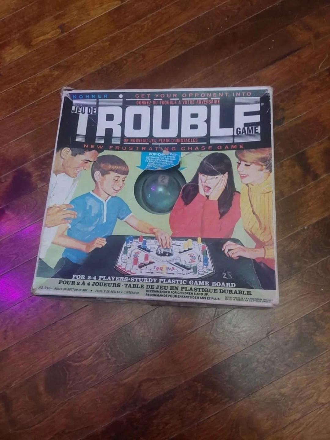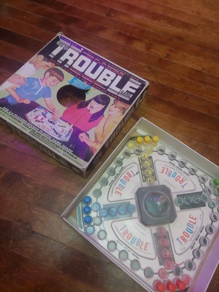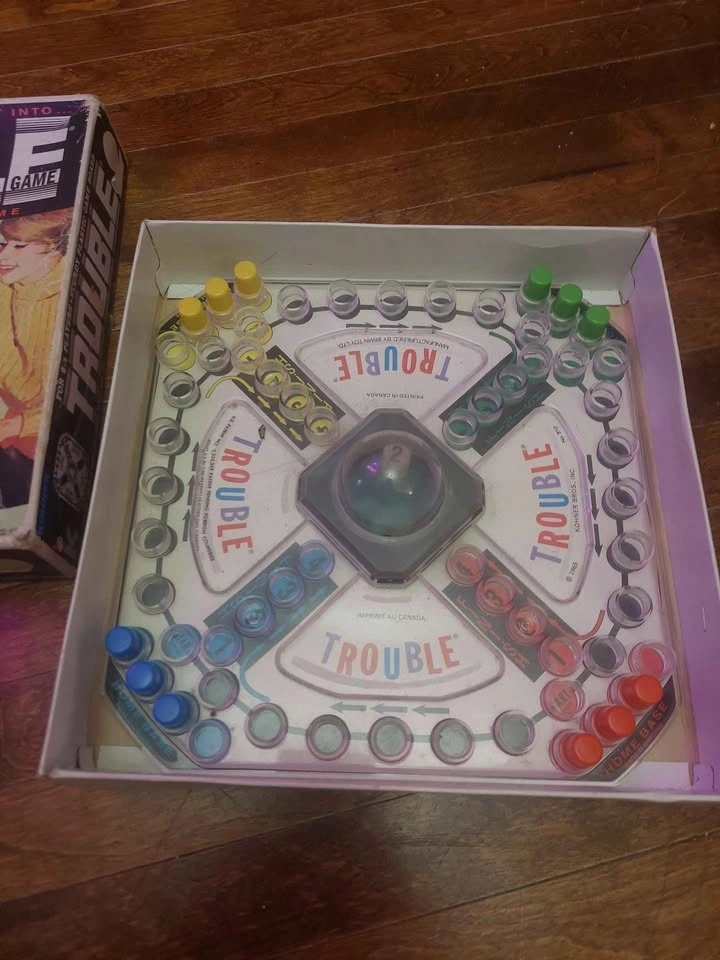 Vintage Sorry game with 3 pegs of each color, 1 missing of each color.