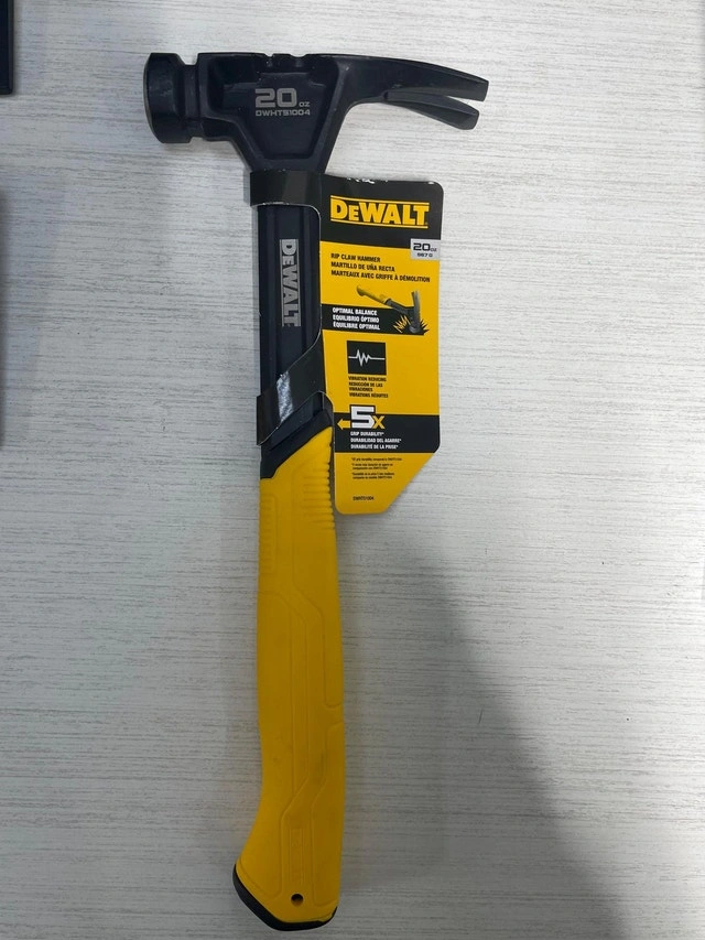 Brand new with box, Model DWHT51004. This 20 oz. rip claw steel hammer offers a balanced design for a smooth swing. It includes a multi-use side nail puller for quick removal of framing and finishing nails, as well as staples. Features a tear-resistant and anti-slip grip, plus a magnetic nail start for one-handed nail placement. Perfect for framing or finishing jobs. Pickup at Islington and Rexdale, Etobicoke. Cash only.