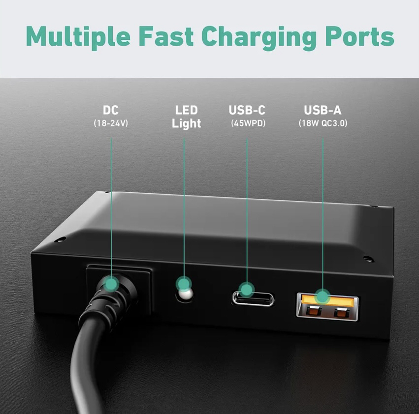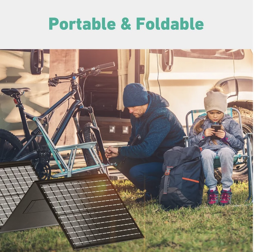 Reliable and clean energy. Supports up to 100W output power via 19.5V DC, USB-PD (45W), Quick Charge 3.0 (19.5W) and normal USB charging (12W). Powers laptops, smartphones, electric blankets, drink coolers and more. High Efficiency: Offers high conversion efficiency of up to 23%, producing more energy from available sunlight. For Outdoor Adventures: Ideal for hiking, camping, RV trips, fishing, boating and more. Lightweight, water and dirt resistant, easy to set up and maintain. Safe, convenient and easy to use: Simply place the solar panel in the direction of the sun, even from your vehicle or a tree, and adjust the angle with the stand.