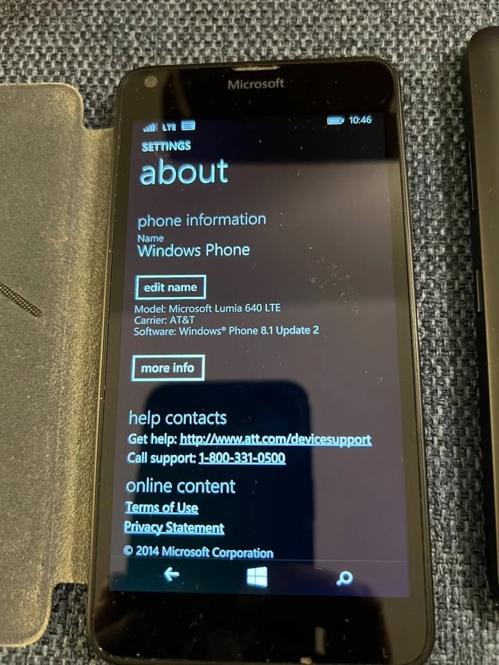 For sale is a Microsoft Lumia 640 cell phone in Like New condition. Comes complete in box with original charging cable, original backplate, and an additional credit card cover/backplate. This phone is known for its excellent battery life, lasting for multiple days. It's unlocked (originally from AT&T) and has been tested to work with a Canadian SIM card. The phone runs Windows Phone 8.1 Update 2. It uses a Micro-SIM card and has a Micro-SD card slot for expandable storage. Pick up in Point Grey.