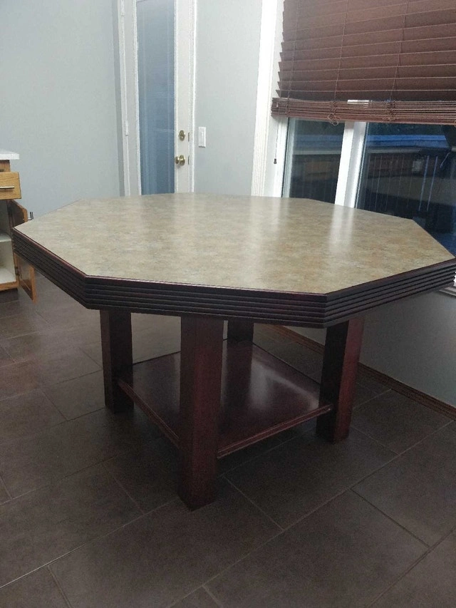 This octagonal dining table is in great but used condition and ready to find a new home! This unique table would be great for any games room. The neutral top will match almost any decor! If the ad is up, it's available! Pick up only. Check out my other ads to save you driving back.
