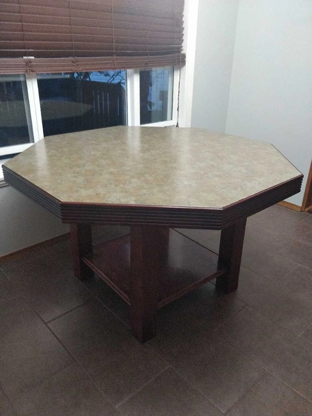 This octagonal dining table is in great but used condition and ready to find a new home! This unique table would be great for any games room. The neutral top will match almost any decor! If the ad is up, it's available! Pick up only. Check out my other ads to save you driving back.