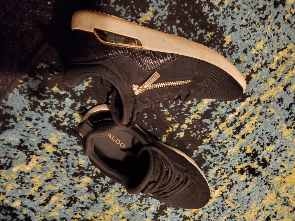 Aldo Black Fashion Sneakers with Gold Zipper Accent