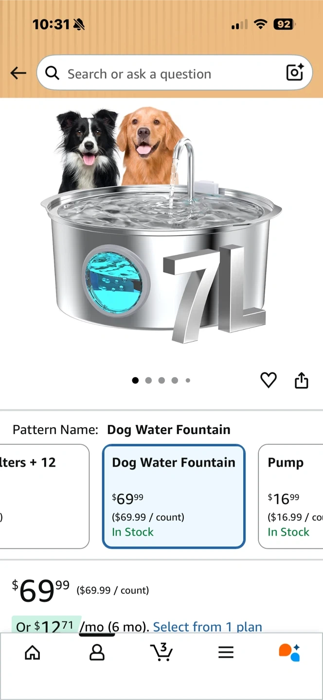 This pet water fountain has a large 7-liter capacity. It's made of stainless steel and features an automatic circulation system to keep water fresh. This fountain is suitable for multiple pets in the household.