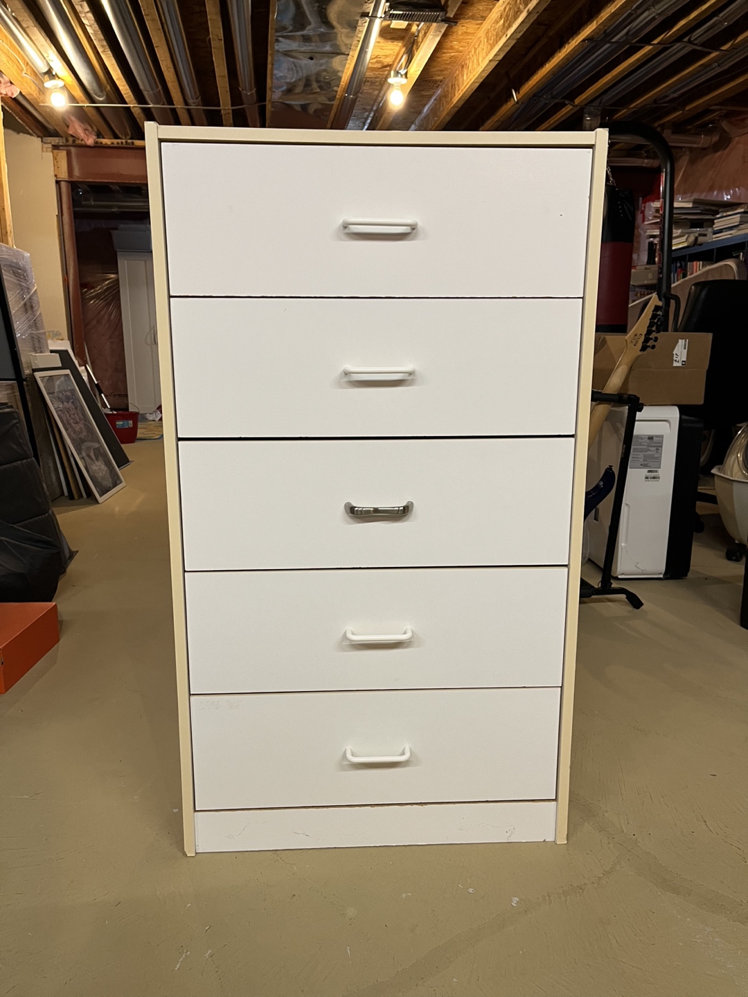 Buy & SellWhite 5 Drawer DresserWhite 5 Drawer Dresser$25White 5 Drawer Wooden Dresser. Drawers smoothly opens and closes. Replaced one of the handles. L 63cm W 40cm H 111cmConditionGoodWHERE TO MEETCornellView MapSELLERverifiedMayCornell1305 reviews5 chats·2 favorites·128 viewsSEND CHAT TO SELLERHi May! I’m interested in your listing.Hi May! I’m interested in your listing.Get the Karrot app to chatSign In to chat