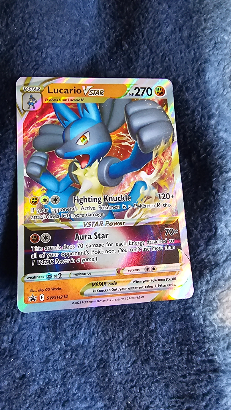 Buy & SellLucario VSTAR Pokemon CardLucario VSTAR Pokemon Card$5Selling a Lucario VSTAR Pokemon card. It has Fighting Knuckle and Aura Star attacks. A great addition to any collection!ConditionLike newWHERE TO MEETCheck LocationView MapSELLERharshTamarack697 reviews1 chats·0 favorites·52 viewsSEND CHAT TO SELLERHi harsh! I’m interested in your listing.Hi harsh! I’m interested in your listing.Get the Karrot app to chatSign In to chat