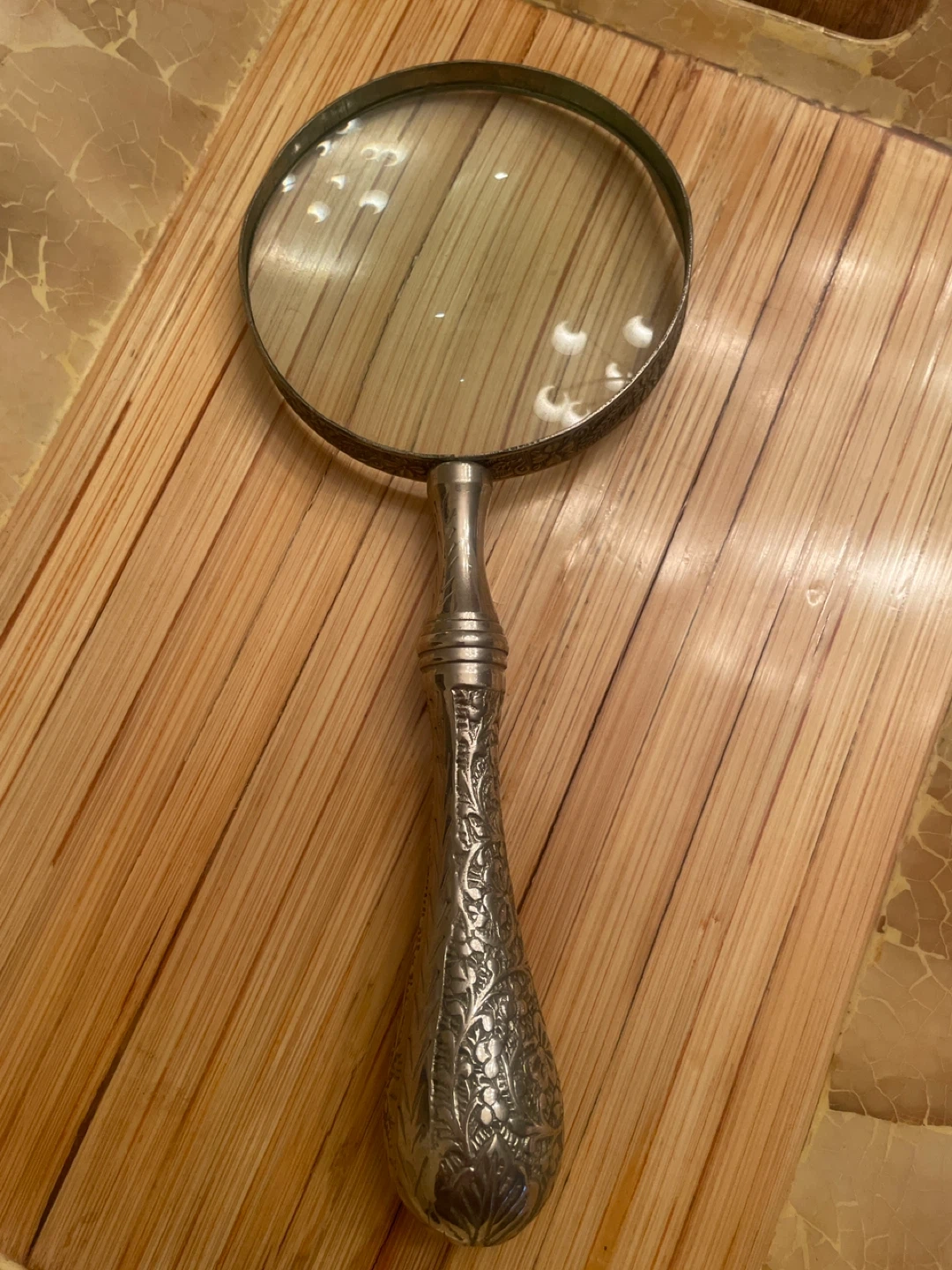 Ornate Metal Magnifying Glass with Decorative Handle