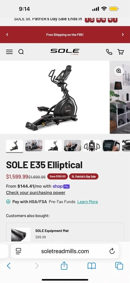 Buy & SellSole E35 Elliptical Exercise Machine with MatSole E35 Elliptical Exercise Machine with Mat$800Barely used machine in very good condition. Less than half price sale.WHERE TO MEETCheck LocationView MapSELLERBhargavi NettemAurora100 reviews0 chats·0 favorites·5 viewsSEND CHAT TO SELLERHi Bhargavi Nettem! I’m interested in your listing.Hi Bhargavi Nettem! I’m interested in your listing.Get the Karrot app to chatSign In to chat