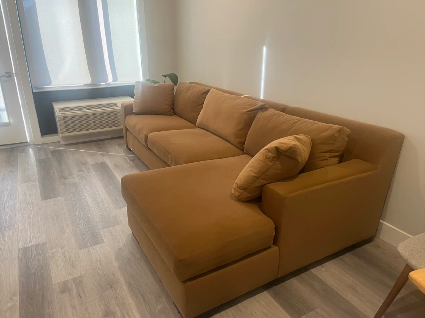Dark Camel Suede Sectional Sofa