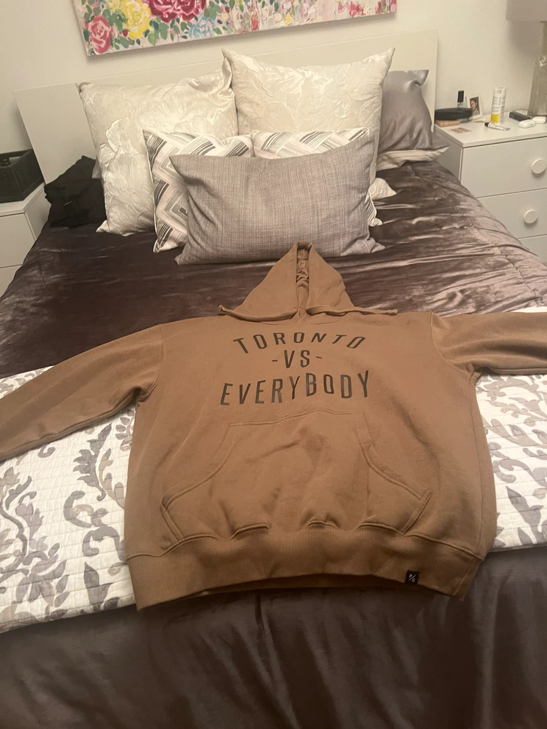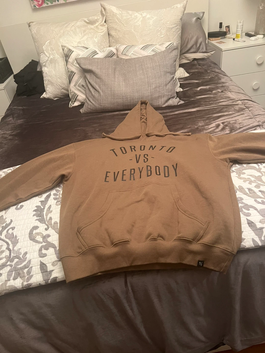 Selling a Peace Collective hoodie with "Toronto Vs Everybody" printed on the front. It's a size L/TP (Large). Designed in Canada! Like new condition. Khaki color.