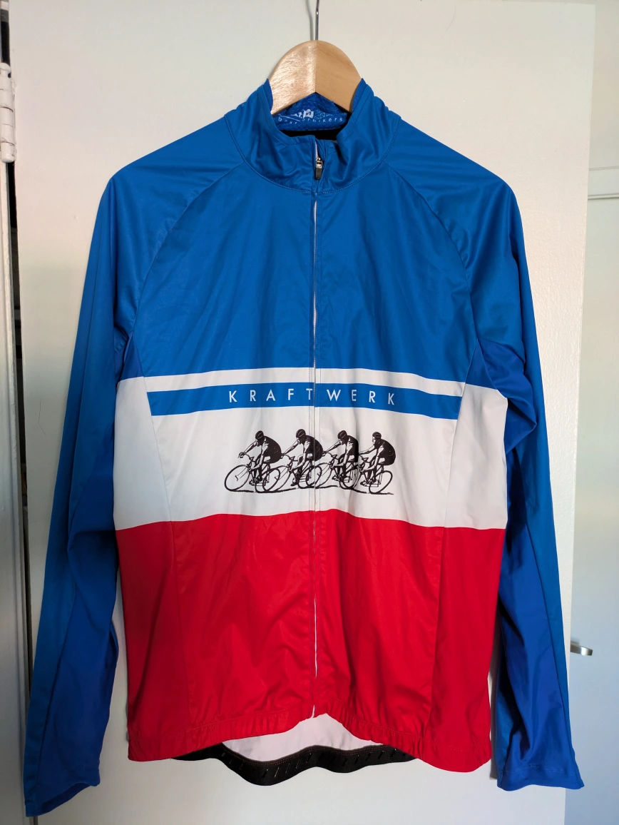 92Kraftwerk cycling jacket, tricolore design, water resistant. Medium size, slim fit. Barely used so in fantastic condition. Bought from Kraftwerk's official store: https://www.klingklangkonsumprodukt.com/en/cycling Pickup only.
