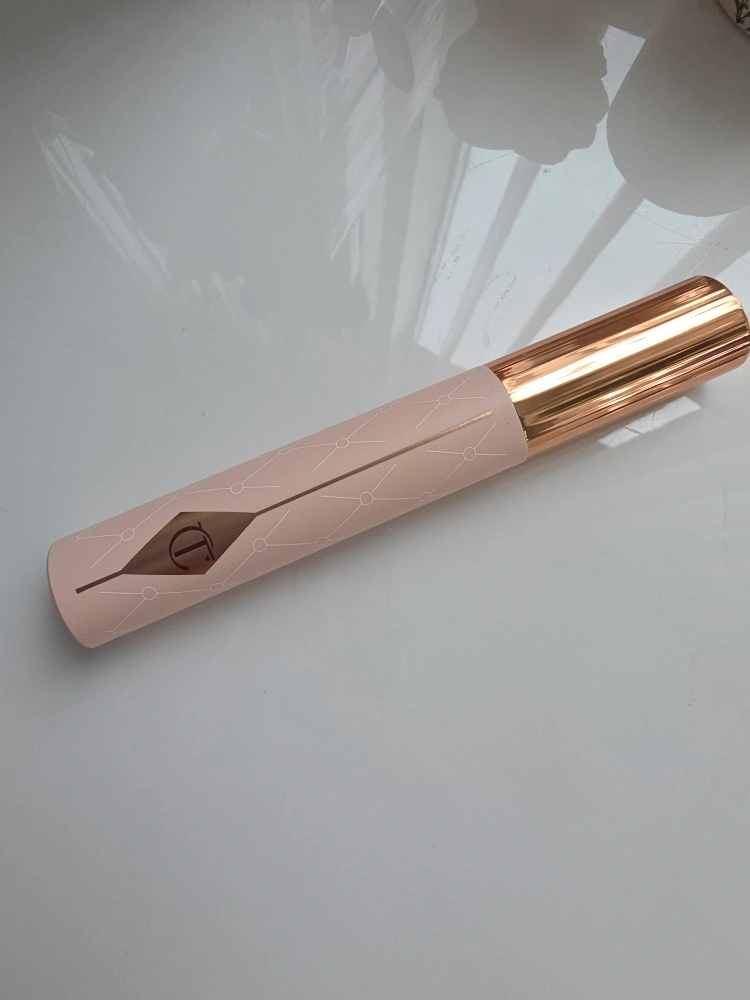 Mascara in a beautiful, rose-gold coloured tube. Features a metallic gold lid. Has branding printed in gold on the front. Applying this mascara can be the perfect way to start your day, or to unwind after a long day. used once