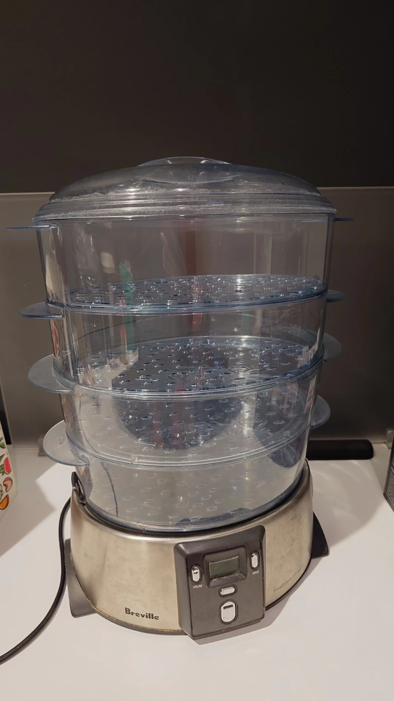 This Breville Health Smart Steamer comes with 4 transparent steaming trays. It has a digital display and timer for easy operation. Stainless steel base with keep warm function. Great to prep different dishes for one meal all at once.