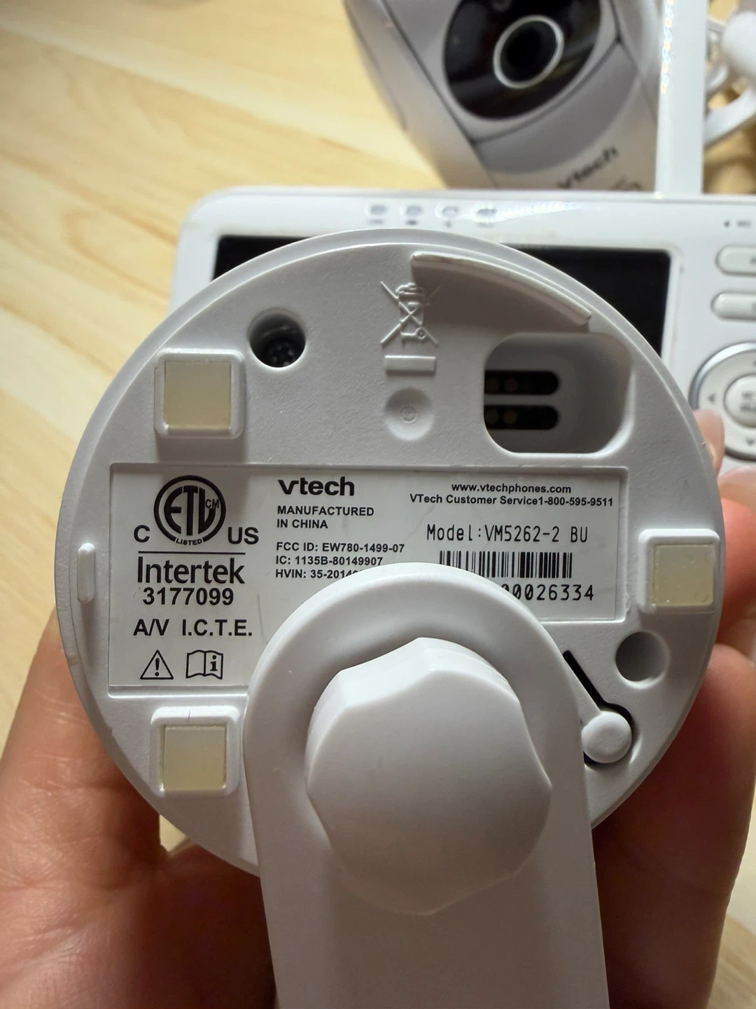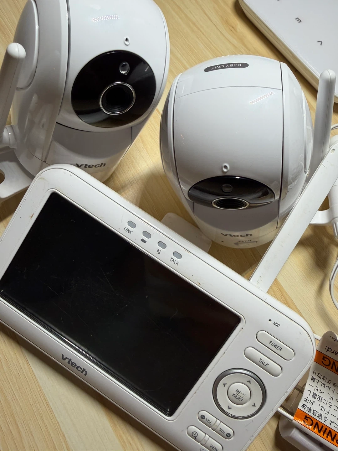 This Vtech baby monitor comes with two cameras and a parent unit. It's designed for keeping an eye on your little one. The model is VM5262-2.