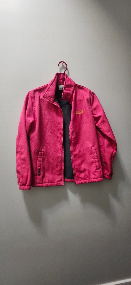 Selling a Jack Wolfskin outdoor jacket in size kids XL. It's a vibrant pink colour and in great condition! Perfect for layering or wearing on its own during milder weather