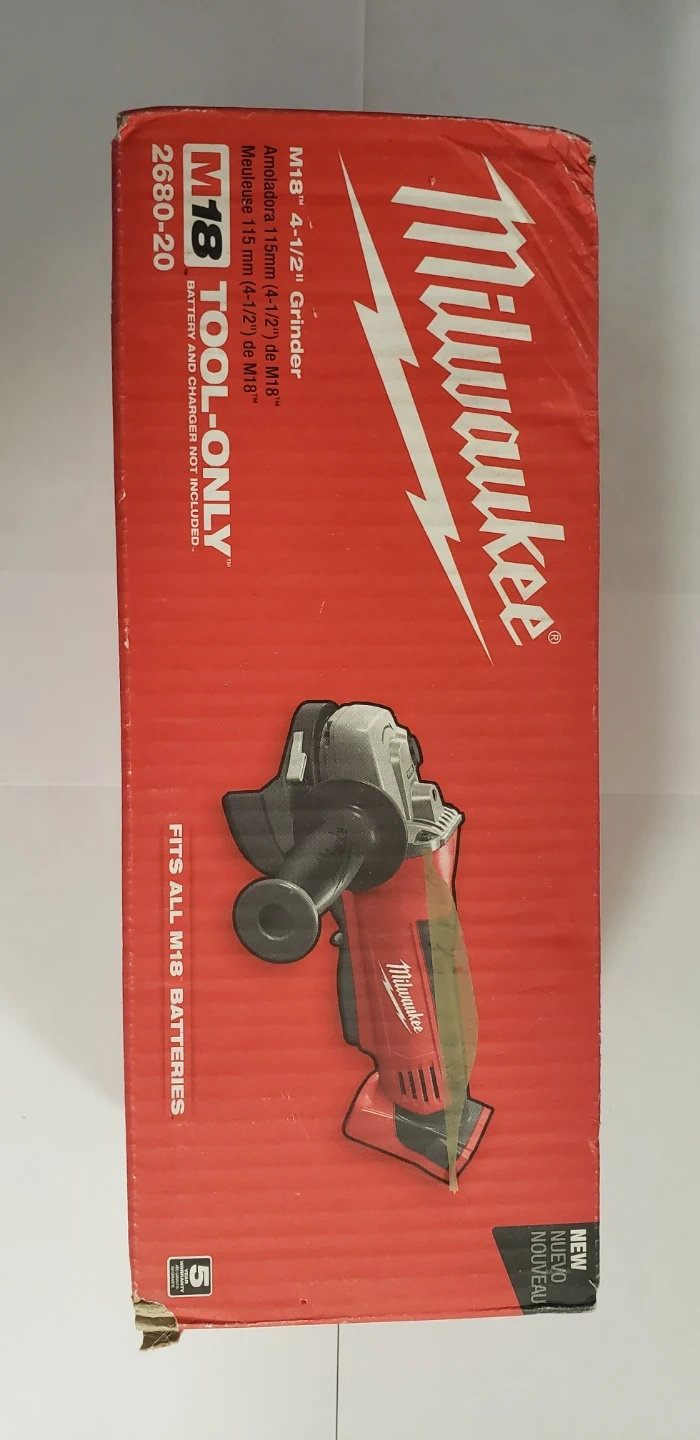 Selling a Milwaukee M18 4-1/2" Grinder (Tool Only). It's new in the box! Model number is 2680-20. This grinder fits all M18 batteries. Please note that the battery and charger are not included.