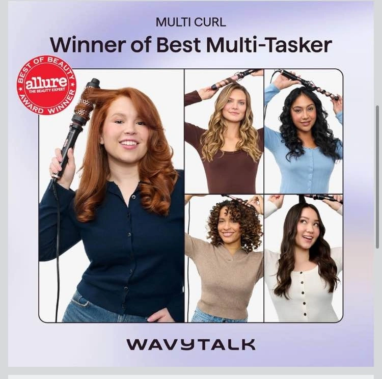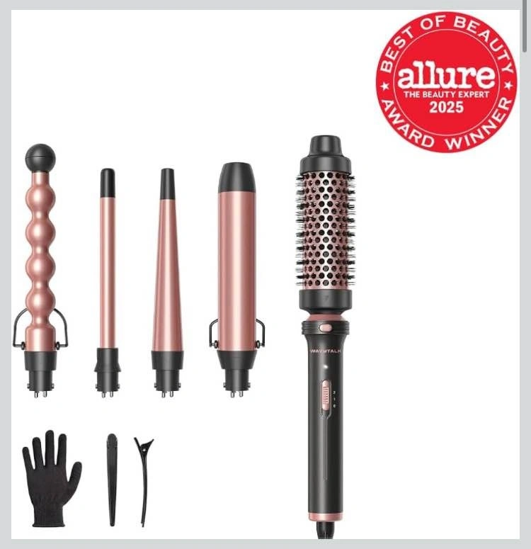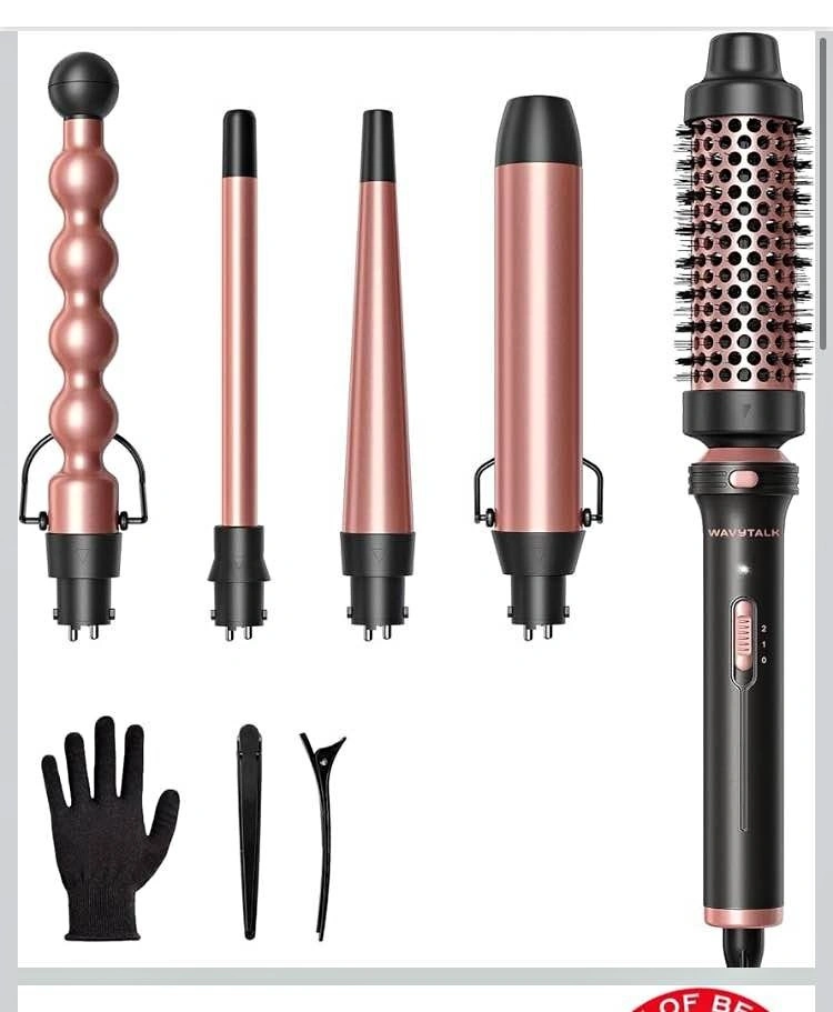 Wavytalk 5 in 1 Curling Iron, Curling Wand Set with Curling Brush and 4 Interchangeable Ceramic Curling Wands (0.35”-1.25”). Includes heat protective glove & 2 clips. Instant heat up.